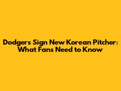 Dodgers Sign New Korean Pitcher: What Fans Need To Know
