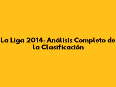 La Liga 2014: Análisis Completo De La Clasificación